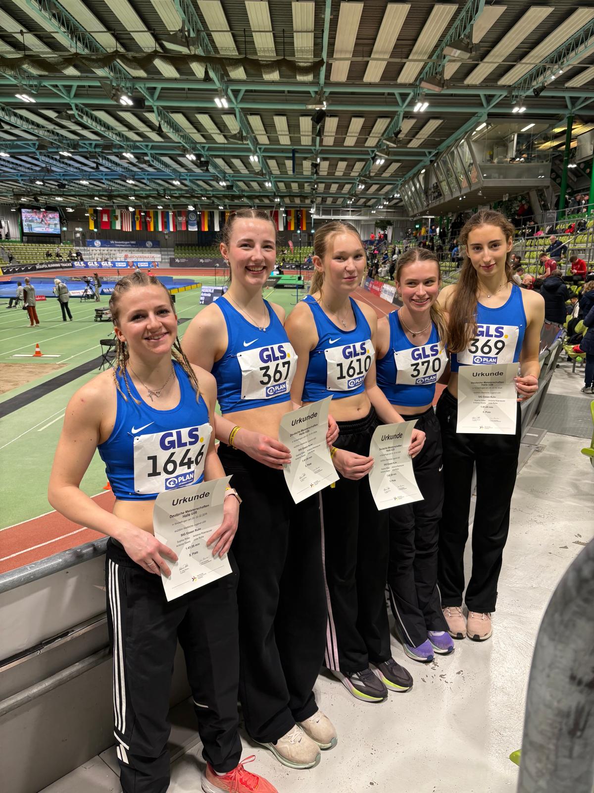 Für einige Werdener Leichtathleten wird das Wochenende in Sindelfingen noch lange in Erinnerung bleiben. Da die 4 x 200 m Staffel schon am Freitagabend anstand, erfolgte die Anreise bereits am Donnerstag. Sophie Ritter, Julia Rohe, Maria Ruppel (alle WTB), Antonia Rüenauver und Antonia Geers (beide Überruhr) gingen als Startgemeinschaft Essen Ruhr ins Rennen. 32 Staffeln gingen an den Start. Im Ranking lag die Essener Staffel auf Platz 6. Im direkten Vergleich gegen den Fünften behielt unser Team von Beginn an die Oberhand. Als klarer Vorlaufsieger mit neuer Bestzeit von 1:41,05 min landete das Team in der Endabrechnung hinter Leibzig, Chemnitz, Eintracht Frankfurt und Olpe/Lennestadt auf einen ausgezeichneten fünften Platz. Genau vor 10 Jahren wurde die Startgemeinschaft Essen Ruhr über 4 x 200 m Deutscher Meister. Damals reichte eine Zeit von 1:41,73 min..